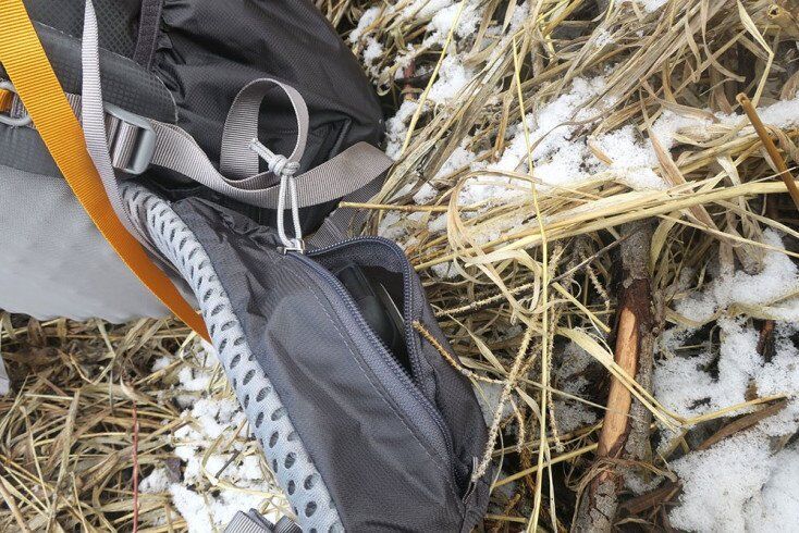 At the very top of the backpack is a zippered pocket that can also hold a ton of gear. I found putting a headlamp, sunscreen, bug spray, and toilet paper worked well in that pocket.