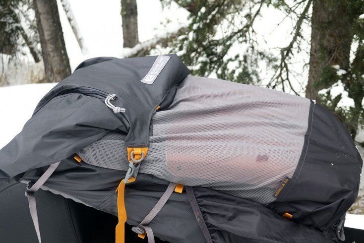 On the front of the Gossamer Gear Gorilla 40 backpack is a large external mesh pocket that can easily store avalanche snow safety equipment in the winter months including a shovel, probe, and even a saw. One thing to keep in mind if using this pack for ski touring is the mesh pocket has the ability to hold all your gear unless you happen to go tomahawking down the mountain. Perhaps there’s a way to customize this pocket to hold all your snow safety gear in place, even after a big crash.