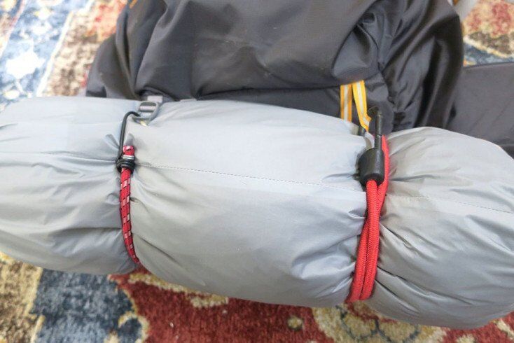 This backpack is perfect for day tours, overnight camping and 2-3 day backpacking trips or possibly even longer. There are two convenient ways to store a tent against this backpack. The first is to put the tent sideways under the roll top closure. This puts more weight up toward your core allowing for an easy carry. Another option is to use the ice loop straps at the bottom of the backpack with some bungees, ropes or Gossamer Gear fasteners to secure the tent to the bottom of your pack.