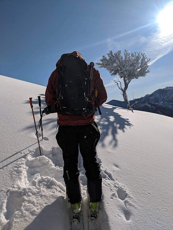 The Mystery Ranch Saddle Peak Pack is a well-built 25L ski and snowboard pack suitable for riding lifts, slaying sidecountry, sled skiing, and bare-bones backcountry tours. I tested this pack skiing OB at Jackson Hole, and on several tours of assorted lengths in the Wydaho backcountry. Some of those tours involved a little ‘schwacking, and strapping my sheathed machete to the side of this pack worked out quite well! This pack made our list of the best ski & snowboard backpacks for its durability.