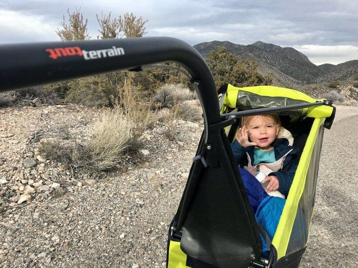 I’ve logged hundreds of miles biking together with my two-year-old daughter on the Tout Terrain Trailer over the past several months. From long road rides with over 2,000 vertical, to technical single track mountain bike trails in Southern Utah and Nevada as well as on snow-covered trails…the Tout Terrain Singletrailer handles it all.