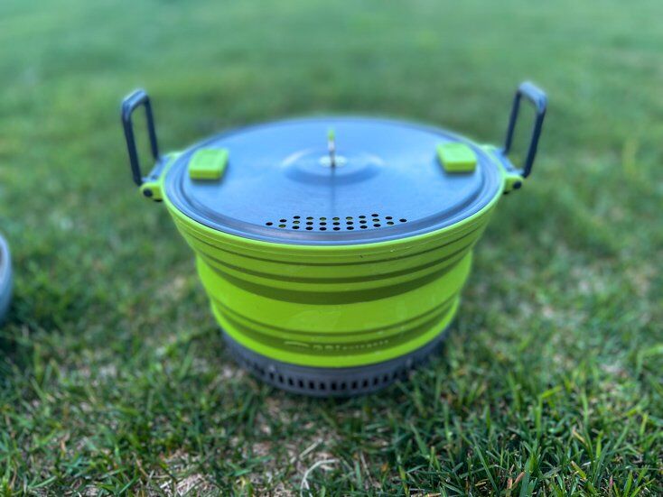 The manual cautions against using the pot as food storage but it was late into the evening and I went against their warning…which leads me to my favorite feature of this pot. With a half-pot of leftover sautéed veggies and my tent calling my name, I secured the pot’s lid in place, collapsed the pot as small as I could make it, slipped it into the cooler and went to bed. The adjustable height made it the perfect size to hold whatever amount of food we had and its collapsibility meant I didn’t have to take up more coveted cooler space than needed. The veggies kept well overnight, leaving me lunch the next day. Although I’ll heed the company’s warning about not storing food in the pot, if you’re in a pinch (or just lazy), the pot doubles as the most efficient storage option you’ll find.