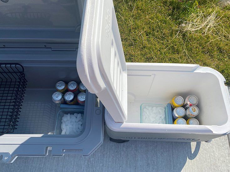 I’ve been very pleased with the insulative properties of the Igloo IMX 70 Qt Cooler in my use. While I have not tested Igloo’s claim of up to seven days of ice retention, I ran a couple of little tests out of curiosity. I compared the melt rate of a bowl of ice in the Igloo IMX 70 versus an older, typical cooler that also happens to be the Igloo brand. I put the bowls of ice (6”x 6”x 3”deep), a small ice pack, and six beers in each cooler and left them for 5.5 hours in the ~75 degree sun. I do have a science degree so recognize this is not the most exact experiment that the world has seen.