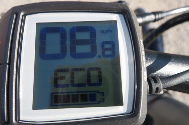 I also discovered that there are four motor modes, each with eight different speeds—which gives you a ton of customizability, even with only eight gears on the back. I found that I really liked Eco mode, which kept me at 9.3 mph, perfect for running around with my dog and getting exercise.