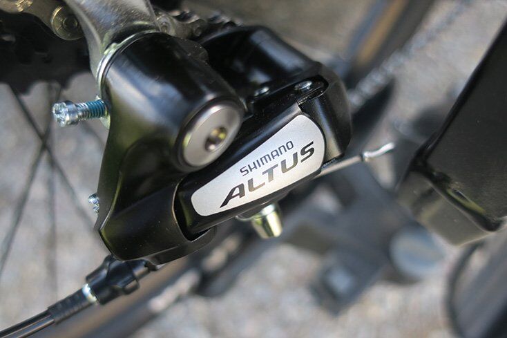 The drivetrain and the rest of the components are what you might expect on an entry-level city bike: a Shimano Altus 8-speed rear derailleur is paired with a single chainring, so you have a grand total of 8 speeds in each mode.