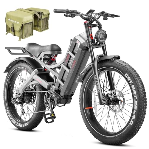 The Mokwheel Obsidian is a full-suspension electric bike equipped with all-terrain fat tires and a sweet camo paint job. Named after the volcanic glass that’s been used as a tool for millennia, this versatile e-bike embraces a similar multi-purpose build. An exciting alternative to Trek or Specialized electric mountain bikes that can cost two or three times more, the Obsidian offers great value that conquers rugged trails, hunting or fishing trips, and rocky terrain.