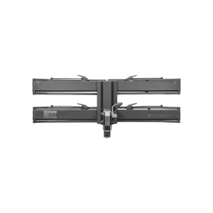 The platform or tray-style hitch rack can hold two bikes, up to 100 pounds each. This ultra-high payload maximum can accommodate hefty models like cargo, MTB, and fat tire electric bikes that may otherwise surpass a typical rack’s weight limit. The bikes are secured via slideable wheel chocks on the front and rear tires— meaning no frame contact— as well as a rear wheel strap. The ION comes with straps to work around fenders, too.