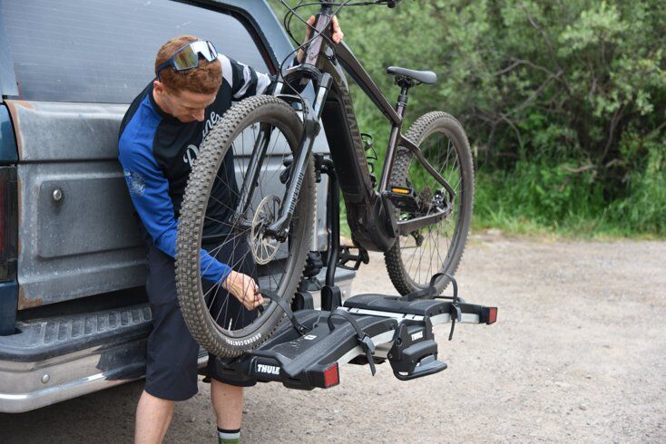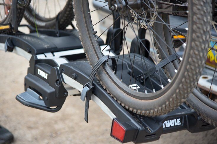Since you’re most likely loading heavy bikes onto the rack, Thule came included a sweet little foldable ramp that makes rolling bikes up and onto the rack a breeze. Plus the rack tilts down so if you have a road bike and wanted to load it up you can simply lift the bike up onto the rack.