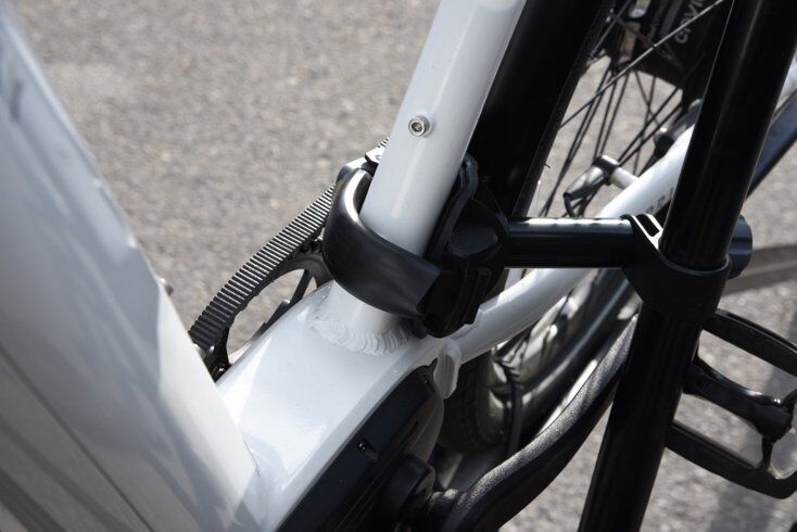 The Yakima OnRamp Bike Rack attaches to your bikes frame view padded clamps and a ratchet locking system. There are 2 clamps on the top and 4 total ratchets on the bottom giving 6 points of contact. Plus the added cable lock for additional security. This rack was designed for e-bikes but also accommodates a wide range of bike styles from town bikes to mountain and everything in between.