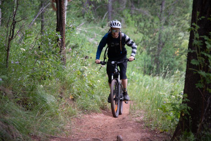 One thing to keep in mind if looking for a dedicated e-mtb is the front end of the P7 is not slack like a dedicated mountain bike, so the steering feels a little touchy if pushing the bike hard. The flip side is this style of feel is very comfortable when commuting through town.
