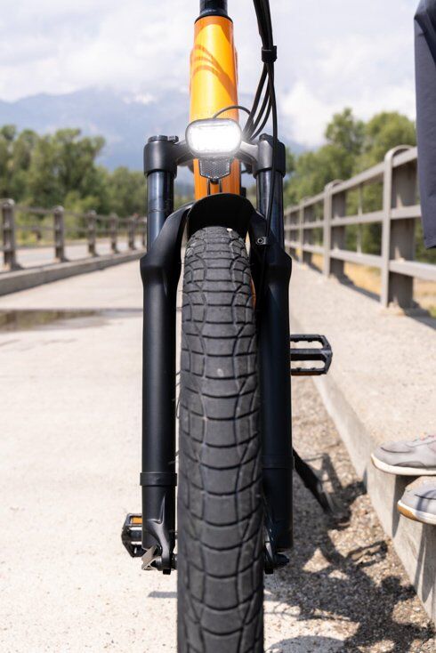 Even in the bright alpine sunlight we were able to see the LCD backlit display which shows you a handful of helpful information including battery life, MPH, assist level and more. We also made sure to test out the front light and integrated brake rear light which are essential for a safe ride after the sun goes down. The lights were quite bright, and we felt assured a cruise at night wouldn’t be an issue.