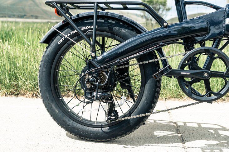 Amid all those tech savvy parts are durable components inspired by standard foldable bikes and MTBs. The compact 20” wheels now come with 3” tires, down from the 4” true fat bike tires on the previous generation XP.