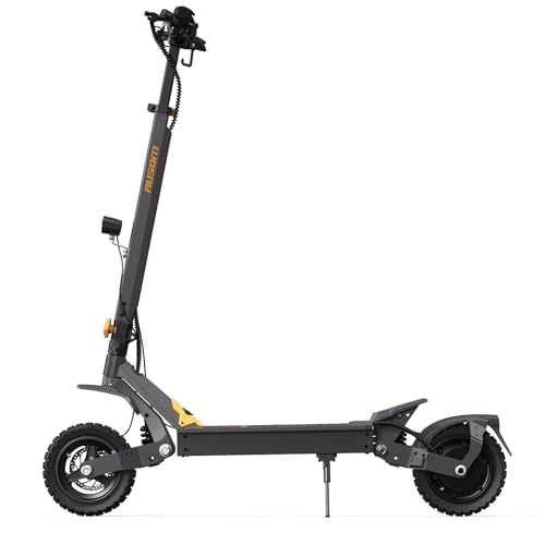 The road tires are spun by a 1000W brushless motor powered by a 48v 20.8Ah battery. The three power modes have top speeds of 9mph, 22mph and 34mph respectively. Rider beware: the thumb throttle is very responsive. The scooter has a 52 mile range and can handle up to 25% grades.