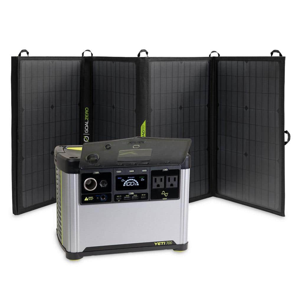 The Goal Zero Yeti 700 portable power station packs a surprising punch, especially considering how small it is. Its power output can handle several devices and appliances at once. Since it has 600W of AC power and a 1,000W surge capacity, it has the ability to run power tools, portable fridges, pellet grills, and more (you name it!).
