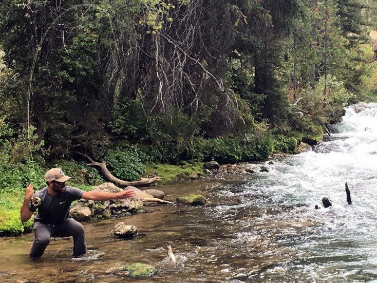 For the rod’s first day on the water, I decided to go fish Flat Creek here in Jackson, Wyoming. It had been at least two weeks since the refuge had opened and the fish were already educated on perfect drifts. A couple bends into my walk I saw a monster feeding on the inside seam line, a tough place to reach from my position.