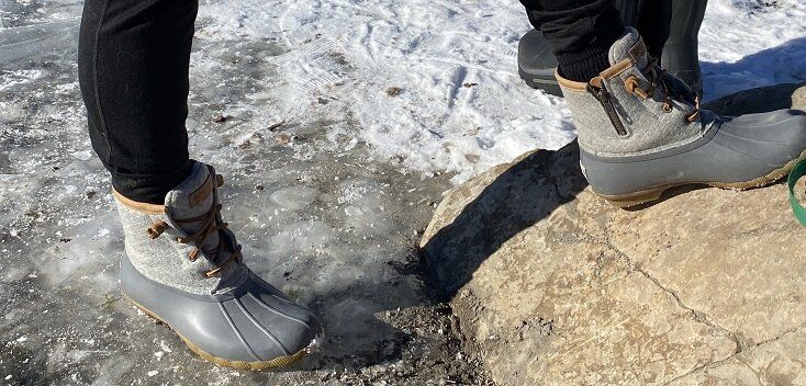 The Sperry Women’s Duck Boot are a mid-height boot that cuts off just above your ankle. There is a wide opening and barrel tie laces. A side zipper helps when taking the boot on and off. This makes the boot a comfortable, get up and go option. I have worn every variation of sock thickness possible. I didn’t feel my jeans bunched up around the ankle if they were tucked into the boot. Also, these are my most comfortable shoes with ski pants, the length and warmth are perfect for ski or snowboard boot transitions. These boots are comfortable in hockey gear, with new covid19 practices, I prefer these boots when having to pre-dress in my hockey bottoms.