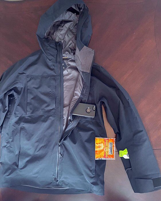 And I gotta say, love the pockets. Pockets for days. Four exterior pockets? A hidden-ish interior breast pocket? Fat interior goggle cargo pocket? Stash pocket on the wrist? I could organize it into my thin gloves and warmers on the hip pockets, car key on my right chest pocket, snack on my left, phone in the interior one, a Gu or something similarly small and delicious on the wrist and the extra cargo net for throwing in the hat and when it gets too hot on the hike.