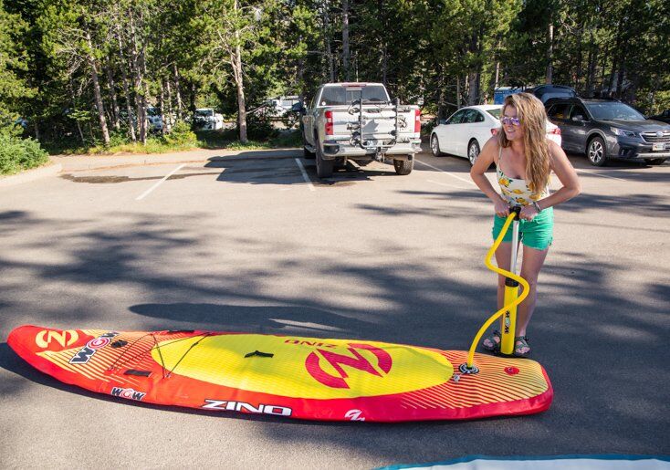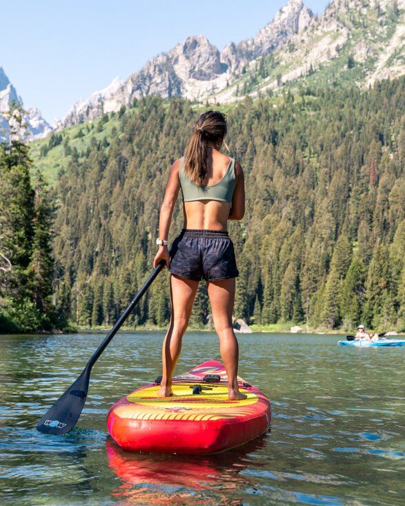 We tested out the Zino 11’ Inflatable Paddle Board from WOW in Grand Teton National Park, where we lucked out on the weather. The morning offered ideal conditions for a morning paddle.