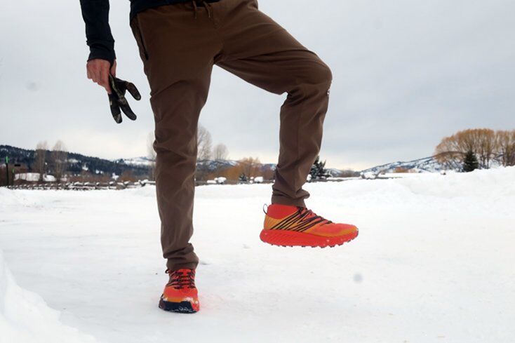 From hard-packed to ice, snow, gravel, and everything I threw at them the HOKA One One Speedgoat 2 Mid Shoes have been able to handle the terrain with ease. The bottom of the shoe comes with Vibram® Megagrip rubber that seems to offer almost as good of traction as traditional spikes do.