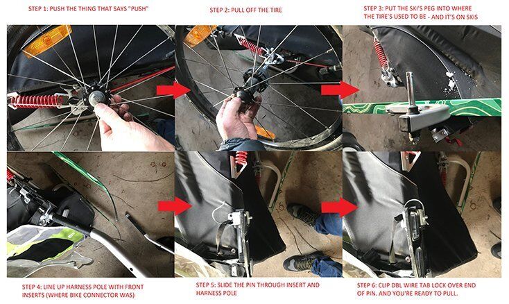 One of the best things about Burley’s ski adaptor is how easy it is to set up. Put the poles together like fat tent poles. Push a button on the tire hub, wheel comes off, then just push the skis into the pegs until they click (though you have to be careful about the rotating skis flipping over if you get some air, not that I’ve done so…)(as an aside, it’s much tougher to convert my son’s little wagon to ski mode than this big beefy trailer). Then take off the bike connection (which is, in my opinion, the only week part of the Burley-bike interface) and hook the poles at the side front two mounts. The waist belt at the end fits snugly and both my wife and I were able to use it without too much adjustment. At first, it feels awkward if you’re not used to a harness and it feels heavy on that first pull, but once cruising, you hardly notice it. At least not as much as you do during that first tug.