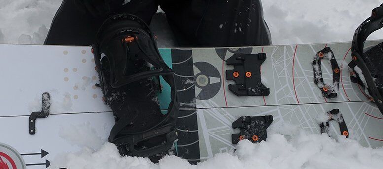Last but not least is the built-in Whammy Bar. The Whammy Bar makes touring less awkward allowing you to easily move the bindings into a higher climbing ladder. There are 2 different heights, the highest being 18 degrees while the lower one is at 12 degrees. One thing I would encourage everyone reading this review to try is to go splitboard touring WITHOUT using your climbing wires. Read that last sentence again, please.