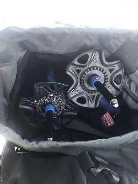 I’ve seen complaints about the basket coming off, though mine never has (as an aside, why do you really need to change up to trekking baskets, I mean really? Sure, wider baskets catch on trees or shrubs or whatever but if you’re using trekking poles, you’re likely on a trail wide enough to accommodate powder baskets; it just seems like the function benefits are negligible). And some people said snow freezes to the handles but I never had that happen to me, including during tours in actively-blowing wintry mix. In fact, I was trying to think of something they could improve but really couldn’t. I guess everything can always be lighter?