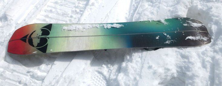 The Bryan Iguchi Pro Splitboard like most boards in this year’s splitboard test seems to have durability issues. When the snow’s deep and it’s sticking to your skis the easiest way to shed snow is to click the skis together or against trees on the way up. After a single tour, the top sheet on this board took a serious beating. I have to send this board back so I can’t really talk to long-term durability.