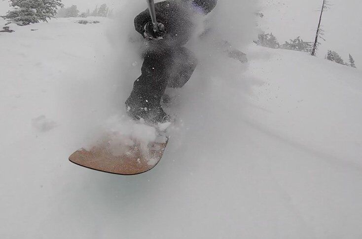 Splitboarders skin up to shred down, and the hovercraft offers up a killer ride towards the valley floor. The float in the powder is as expected, which is to say, fantastic. While I was hoping to be able to keep my weight more centered on the board, but the nose still dives as normal when it’s deep. Still, you are required to shift much less weight to the rear leg than on a traditionally shaped board, saving a ton of leg power for the fun stuff. Wide arcs, quick weaves, and powder slashes are all pleasurable on the Jone Hovercraft.