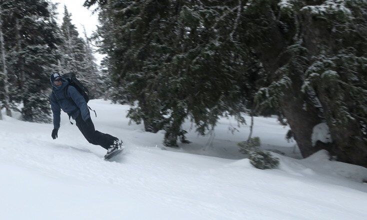 I really enjoy riding the Never Summer Atom Splitboard ($1059.99) going downhill. Out of all the Never Summer Splitboards I have tested the new touring profile seems to work the best, but it’s far from perfect. On powder days this profile works, on slick skin tracks you’re going to be bummed sliding around over the boards rocker over and over throughout the day.