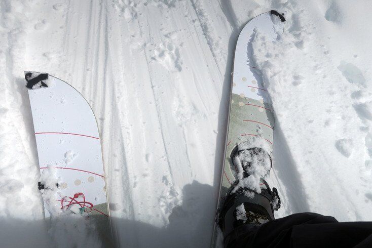 Put the board on a flat table and give it a spin in ride mode this shows the playful rocker for going downhill. Now, do the same in tour mode and the board’s skis spin, something you really don’t want happening while free-heeling touring.