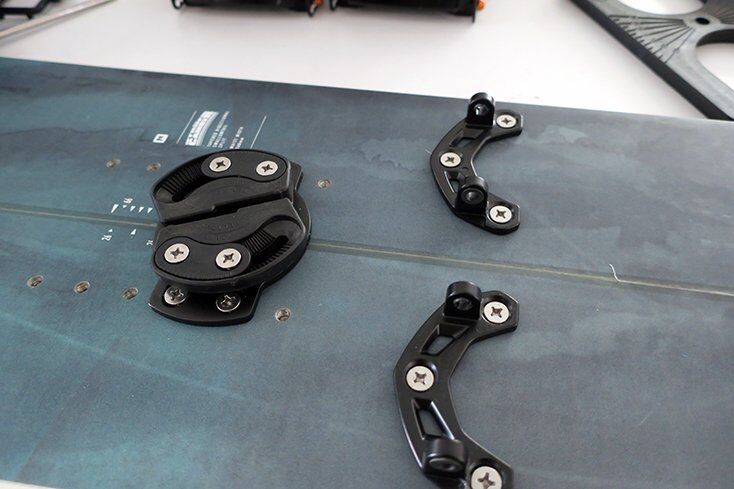 There is only 2″ of clearance between the touring brackets and rear hole pattern. Other boards, I passed on reviewing ran into this same issue. This does not allow enough room for the bindings to go on in ride mode as they hit the touring brackets and are not able to be mounted as such.