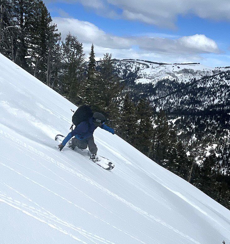 The Taka Splitboard from Salomon is available in 3 sizes; 155cm, 158cm, 161cm. I ended up on the 158cm where I normally would opt for the 161cm. I had zero problems riding this board in deep backcountry powder in the Tetons.