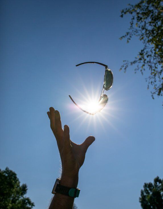 The first thing you notice is what you don’t notice. The glasses are ultralight and sit on the nose like a feather. Soft synthetic pads grip the nose and temple without pulling hair or slipping down the bridge. The glasses stay on the face while running or riding because of the 20 gram total weight.