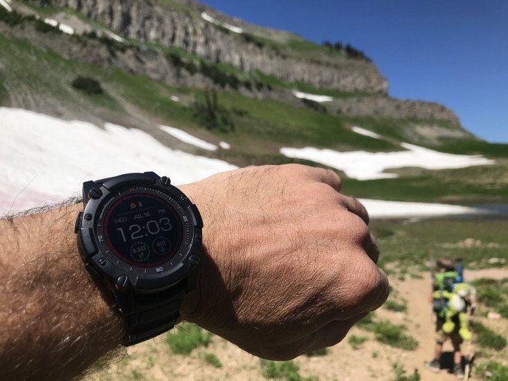 The juice from your body heat powers this powerwatch smartwatch. Sure, it’s nice everyday to never have to worry about your watch dying. But where I really found it huge is on backpacking trips. Recently my son and I went on a 3-day backpacking trip in the south Tetons, both rocking watches with step counters. It’s a great way to track progress but it’s also a fun game the boy and I have – trying to set new step records. We hit 20,000 steps the first day. About 22,000 on the second. By the third my son’t watch died but my Thermoelectric-powered smartwatch was full energy (we charted 18,000). The Power Watch 2’s most unique feature is its ability to convert that body heat you create churning down the trail into energy to keep its battery filled. And if you don’t create enough yourself, it also gets some solar power. And there’s a heat-charging watch stand for when you’re at home. After 3 days of hiking, 2 with it set to measure the specific hike distance, it never dipped below fully charged.