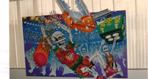 The original “Slam Dunking Skullman” jerseys were created by Greg Spiers, a New York sports artist. Greg Spiers designed this eye catching logo for the Lithuanian basketball team to wear during the 1992 Olympic Games that were held in Barcelona.