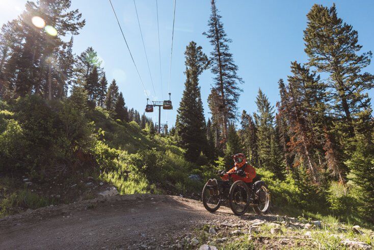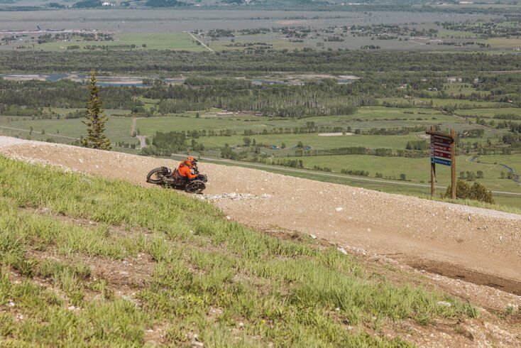 In the past ADA type trails were dumbed down for adaptive mountain bike riders, now the same trails that work for mountain biking can also work for adaptive trike style bikes thanks to the forward thinking of local adaptive athletes Joe Stone and Pierre Bergman with support from Jackson Hole Mountain Resort and Teton Adaptive Sports.